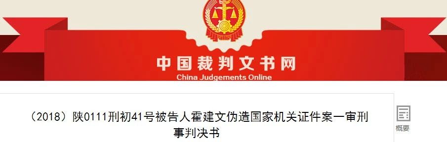 被告人霍建文犯?jìng)卧靽?guó)家機(jī)關(guān)證件罪,判處有期徒刑六個(gè)月,并處罰金200000元。(刑期自判決執(zhí)行之日起計(jì)算。判決執(zhí)行以前先行羈押的,羈押一日折抵刑期一日,即自2017年11月1日起至2018年4月30日止。罰金已繳納。)
