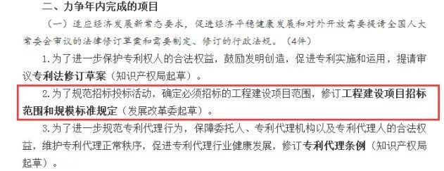 國務院辦公廳在2017年立法工作計劃中明確,將由國家發(fā)展改革委負責進行修訂《工程建設項目招標范圍和規(guī)模標準》。修訂的主要內(nèi)容是,確定必須招標的工程建設項目范圍。